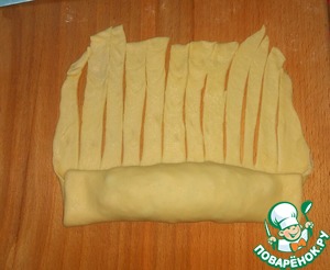 Оставшийся свободный край теста часто нарезать на полоски. -