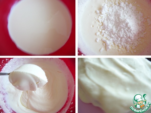 сливки, добавить сахарную пудру, сливочный сыр, взбить до однородной массы.