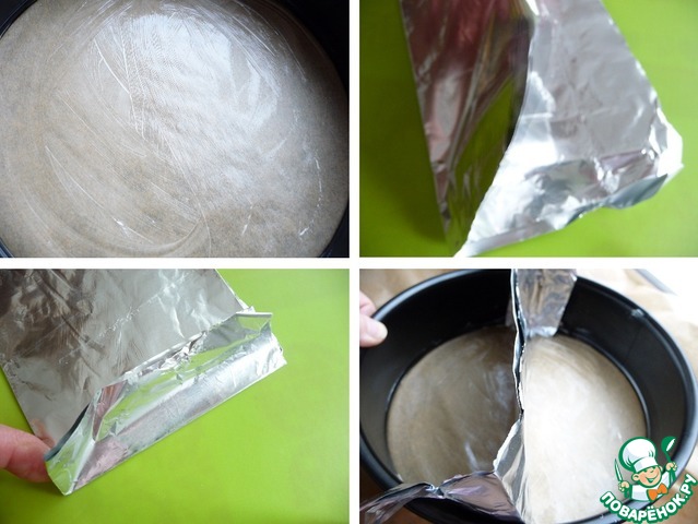 • Разъемную форму 20см застелить пекарской бумагой, смазать маслом.