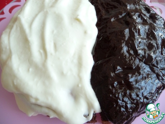 • Накройте темную сторону бисквита толстым слоем шоколадной глазурью.