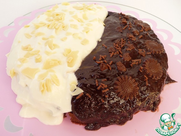 Два в одном - этот рецепт бисквитного торта с шоколадом и сливочным кремом. Для любителей шоколадной глазури, торт под толстым, толстым слоем шоколада. Шоколадный торт – не просто замечательный десерт. Это прекрасный повод поднять себе настроение, зарядиться бодростью и энергией. Бисквит выпекается двух цветов одновременно в одной форме. Торт получился нежным. Охлаждать его не рекомендую, он должен быть мягким.