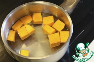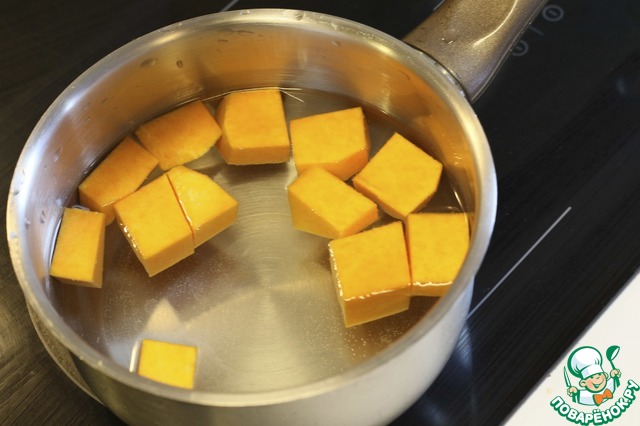 Рецепт довольно простой. Тыкву очистить, крупно нарезать и отварить в кипящей, подсоленой воде до готовности. 15-20 минут.