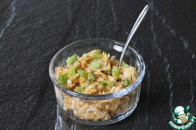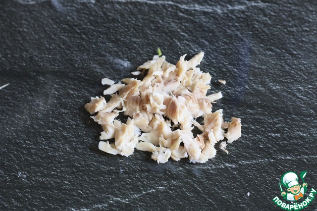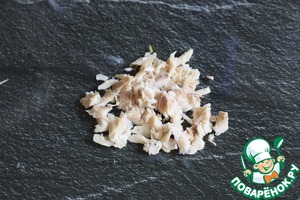 Рыбу очистить от кожи, костей, если они есть и мелко нарезать.