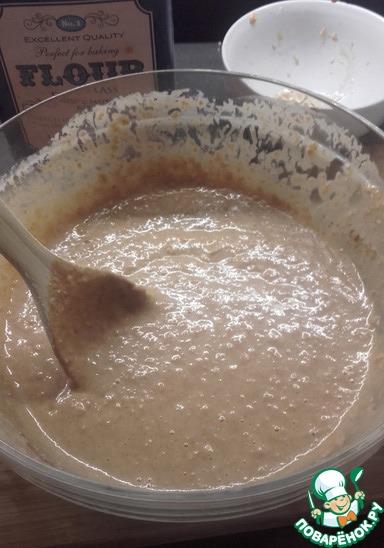 • 1) В миске смешайте муку, соду, разрыхлитель, пряности и соль. А в середине сделайте ямку.
