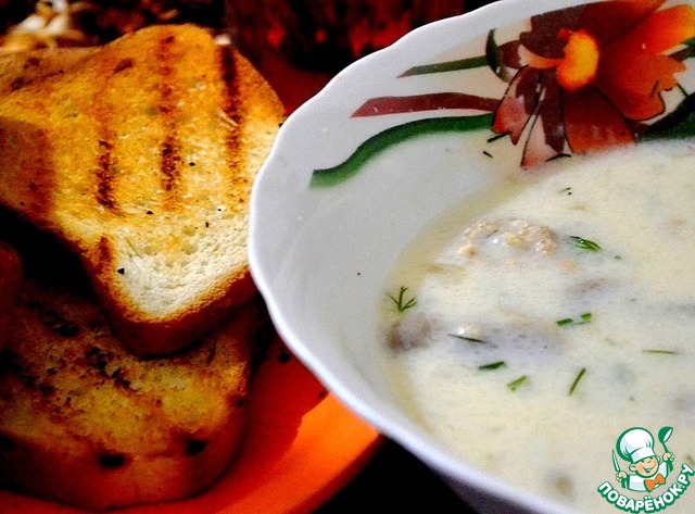 На мой вкус суп жирноват. У меня был фарш 60% говядины и 40% свинины. Советую брать более постный, потому что у меня после стояния в холодильнике на супе образовался твердый слой жира.