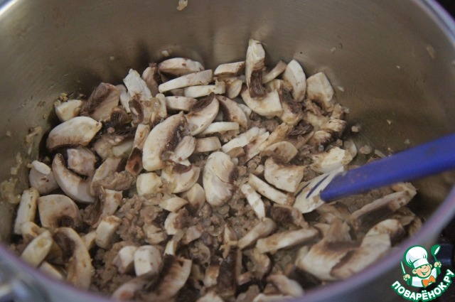 Как фарш, так и грибы можно обжарить и отдельно. -