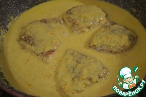 Обжарить на подсолнечном масле с двух сторон до легкой румяной, корочки, отложить в другую емкость.