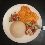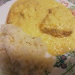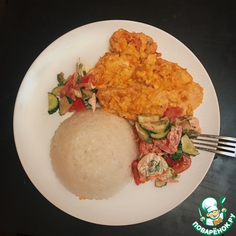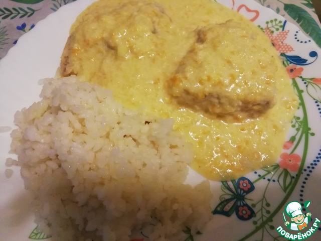На сервировочную тарелку выложить рис, рядом налить соус и сверху расположить филе.