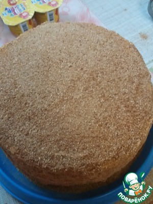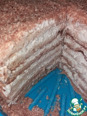 Аккуратно складываем торт, коржи не прижимаем! Часть крема оставляем для верха и боков. Задерживаем дыхание и переносим сие чудо в холодильник на пару часов)