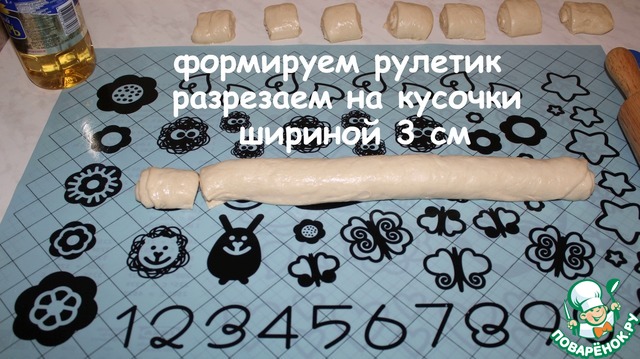 Формируем рулетик. Разрезаем на кусочки шириной 3 см.