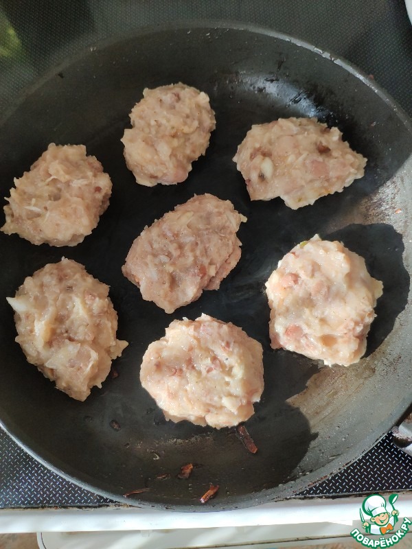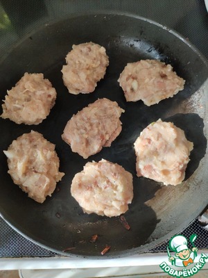 Сформировать котлетки и слегка обжарить их на сковороде.
