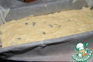 Тесто выложить в смазанную форму (или застеленную бумагой для выпечки) и разровнять. Поместить в духовку при 180 градусах