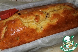 Выпекать около часа до сухой зубочистки. Вынуть и остудить в течении 10 минут. Затем сверху сделать проколы и полить сиропом.