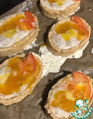 Опять в духовку - до загустения белка (3-5 минут). Никуда не уходим и ориентируемся на свою духовку. У меня белок потек. Из этого делаем вывод -в следующий раз бортики делаем повыше ).