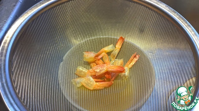 Процеживаем бульон в какую-нибудь временную чашку, а панцири выкидываем