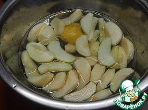 • Яблоки очистить, удалить серединку и нарезать ломтиками. Залить холодной водой с соком половины небольшого лимона.