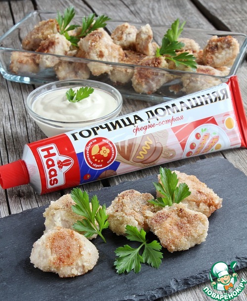 А тут такие классные штуки получились, я удивилась. Горчица ,как то запах отбивает, и в панировке, они не такие прям расползающиеся- нежные получаются. А крепенькие-мягкие, с хрустинкой. Вкусно