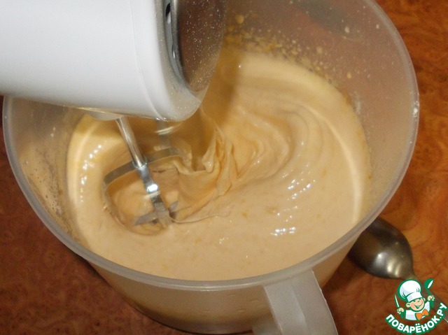 • Начинаем взбивать. У меня миксер ручной, но довольно мощный, поэтому я начинаю взбивать на первой скорости, если же Ваш миксер не сильно мощный, то смело ставьте среднюю скорость!