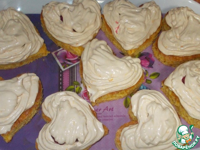 • После того, как мы из коржа вырезали сердечки, остались вкусные обрезки, а количество крема-суфле и глазури рассчитано точно на весь корж!