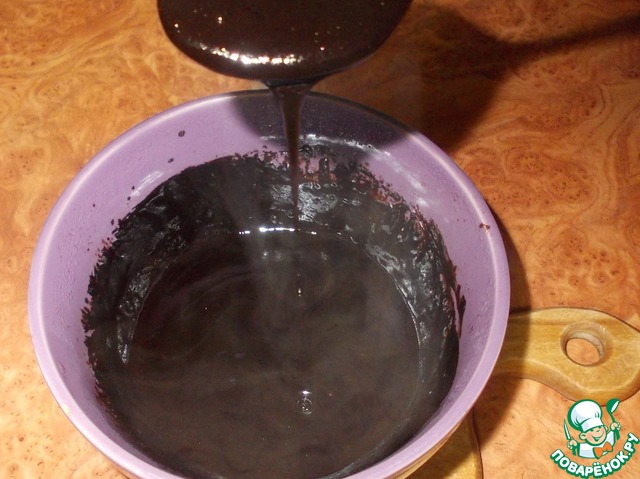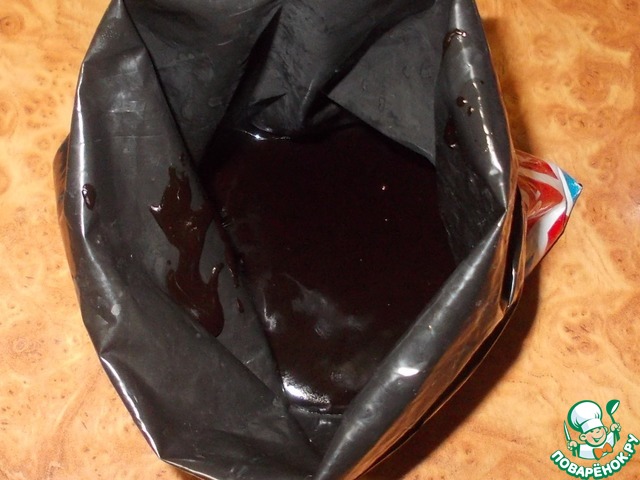 • Даем глазури остыть немного (чтоб не обжечься при дальнейшей работе с ней) и переливаем в кондитерский мешочек.