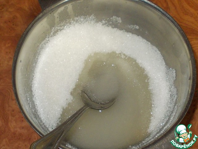 • Кастрюльку с сахаром и агаром ставим на средний огонь. Периодически помешивая доводим до кипения. Делаем маленький огонь и варим сироп 7 минут. (Я градусника не имею, поэтому температуру не скажу, но варю всегда при медленном кипении 7 минут).