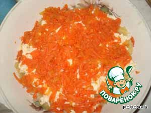 • Морковь натираем на крупной терке и выкладываем на сырок.