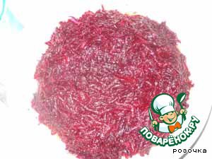 Полазила по сайту, вроде такого варианта нет. Очень вкусная шубка. Любимое блюдо всех мужчин из моего окружения. Ни один праздник не обходится без этого салата. Заранее извиняюсь за фотку, просто фотографировала еще не пропитавшийся салат.