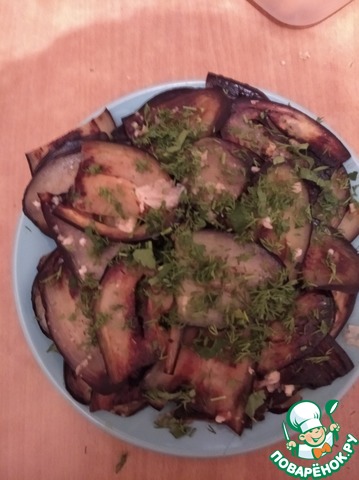 Слои баклажанов также можно пересыпать зеленью, а еще можно прокладывать тонкими ломтиками помидоров. Баклажаны получаются очень вкусные, а блюдо подходит и как закуска, и на гарнир. А как вкусно положить лепесток баклажана на свежий хлебушек! Одним словом, готовьте - не пожалеете!