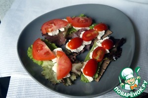 На салат – творожный сыр, я выкладывал чайной ложечкой.