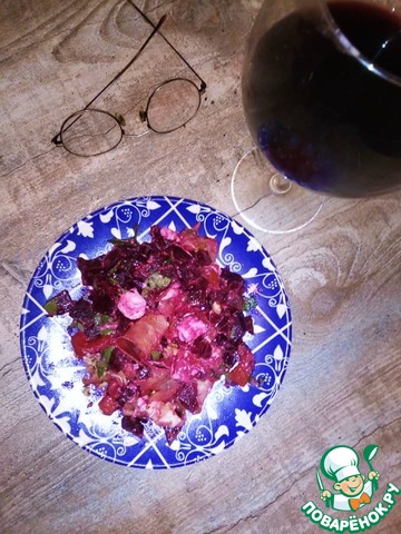 Можно запечь свеклу в духовке и нарезать кубиками или сделать как делал я. Варить свеклу я не рекомендую, потому, что запеченная свекла имеет насыщенный чуть-сладковатый вкус, который хорошо гармонирует с остальными ингредиентами.