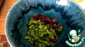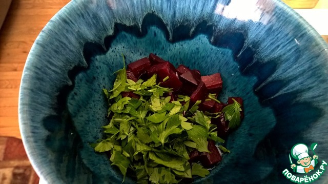 • Нарезаем петрушку средне и добавляем в миску со свеклой