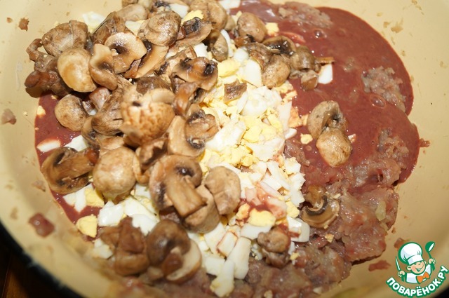 Шампиньоны мелко нарезать. У меня были замороженные, но конечно можно использовать и свежие.