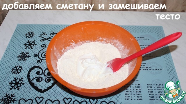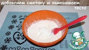 Добавляем сметану и замешиваем тесто.
