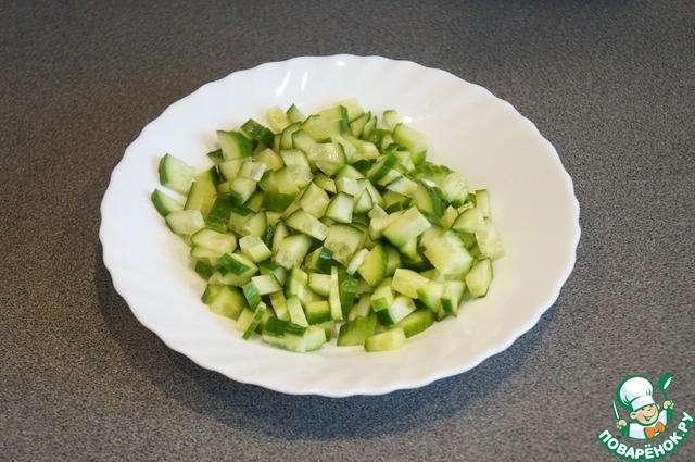 Нарезать огурцы, порубить зелень.