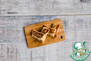 Начините блинчики: кладите перед собой на рабочую поверхность 1 блинчик, выкладывайте по центру близко к краю ложку сырной начинки и сворачивайте «конвертиком», подгибая открытые края. Когда все блинчики будут готовы, обжарьте их в масле с обеих сторон до легкой румяной корочки и подавайте.