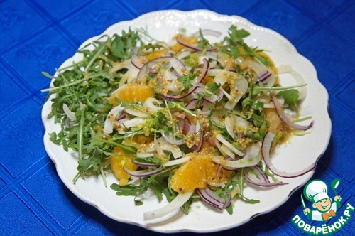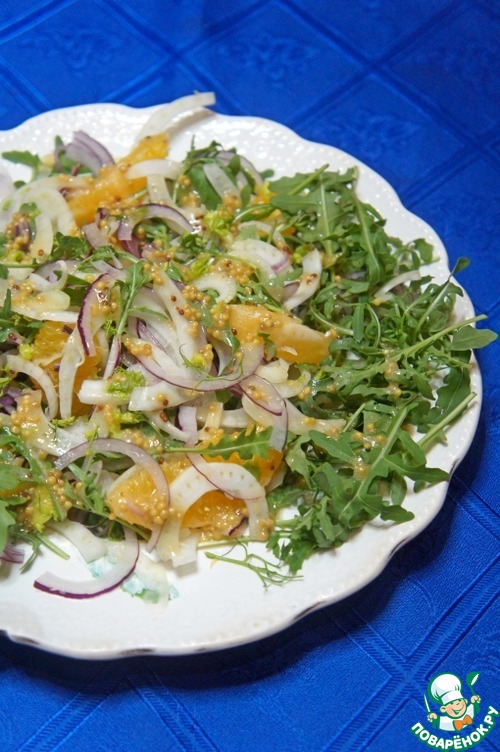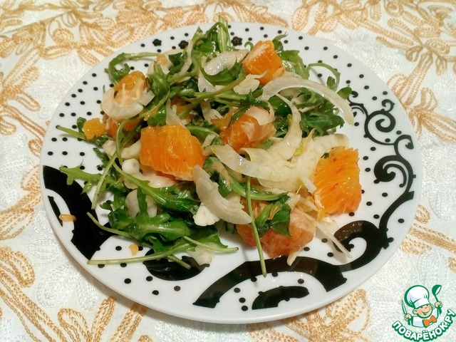 Салат из фенхеля с апельсином и рукколой. Совершенно восхитительный салат. Он ведь содержит рукколу, а я ее не просто не люблю, очень не люблю... Но, этот салатик ела с большим удовольствием, настолько он свежий, необычный и очень вкусный!