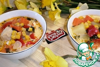 Этот яркий, насыщенный овощной суп заслуживает самого пристального внимания. Мне, правда, пришлось сделать некоторые замены, исходя из реалий нашего архангельского продуктового изобилия, но не думаю, что они существенно повлияли на вкус блюда. Заходите, будет интересно!