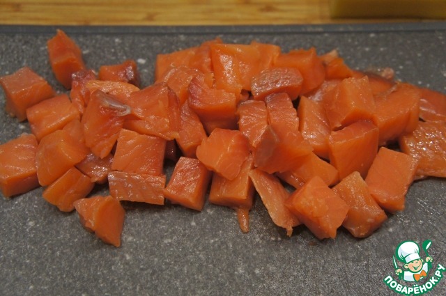 - Семга (250-300 г, филе слабой соли) — 250 г