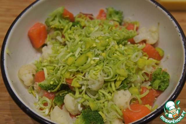 Порей я обжарила в сливочном масле, остальное по рецепту.