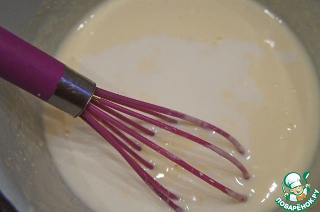 Равномерно залейте начинку, стараясь, чтобы она протекла и в начинку. Для этого я немного раздвигаю ее ножом..