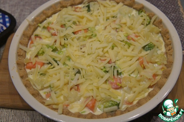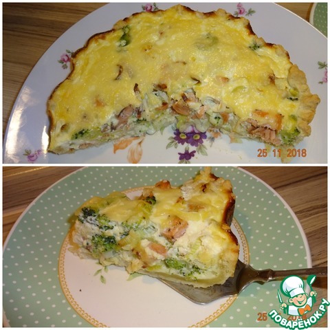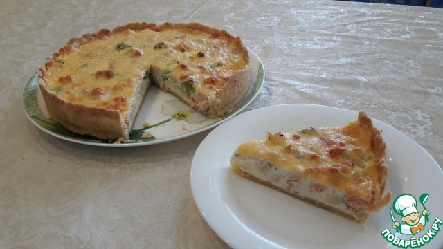 Киш с семгой, цветной капустой и брокколи. Идею этого киша дала мне одна хорошая виртуальная знакомая _ Ларочка Гудкова. Она вообще-то непревзойденный специалист по тортам, но и другой выпечкой не гнушается. Я рецепт немного переработала, что-то убавила, что-то прибавила. Получился очень вкусный пирог.