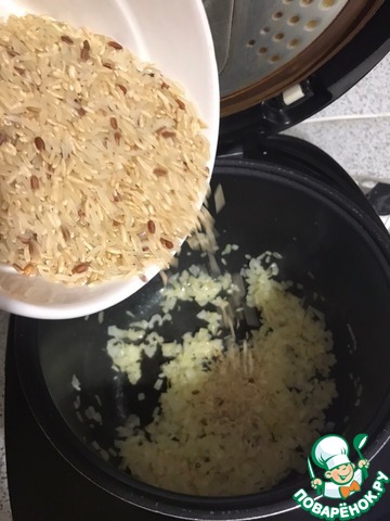 Рис и лук обжариваем, чтобы каждая рисинка пропиталась маслом. -
