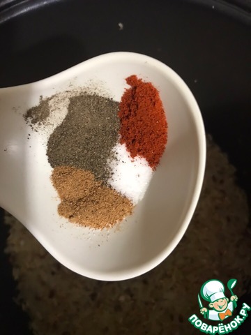 Итак, добавляем специи, перемешиваем. ждем окончания программы "Жарка. -