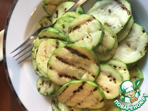 Молоденькие кабачки почистить, порезать кружочками, посолить и обжарить на сковороде гриль.