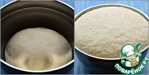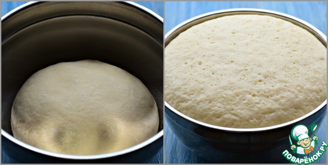 Тесто получается мягким, нежным, чуть липнущим к рукам. Но забивать тесто мукой не следует. Так как у разных производителей мука отличается, сразу все ее количество всыпать в тесто не стоит. Возможно, понадобится чуть меньше муки или, наоборот, придется немного увеличить ее количество.
