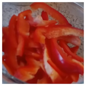 • 3) Красный болгарский перец нарезать соломкой.