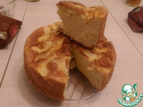 Чашу мультиварки смазываем маслом, выливаем тесто, сверху (по желанию) выкладываем тонкие ломтики яблока и немного посыпаем сахаром.