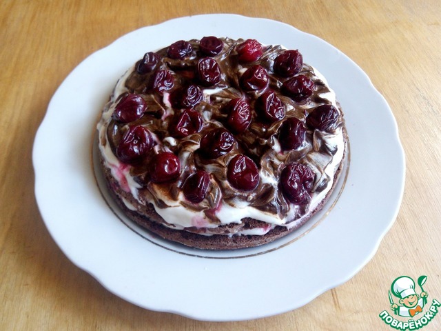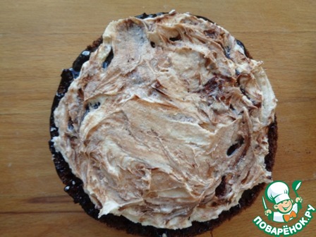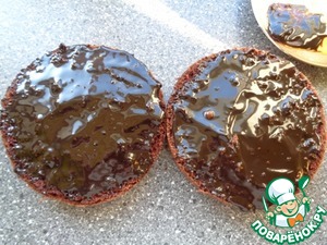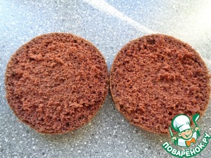 Тортик приготовлен в форме диаметром 13 сантиметров. В форму для запекания положить бумагу для выпечки, вылить тесто и выпекать при температуре 180 градусов 30 минут. Тесто проверить на готовность деревянной шпажкой. Извлечь корж из формы, остудить на решетке и дать выстояться не менее двух часов при комнатной температуре. Затем разделить его на два коржа.
