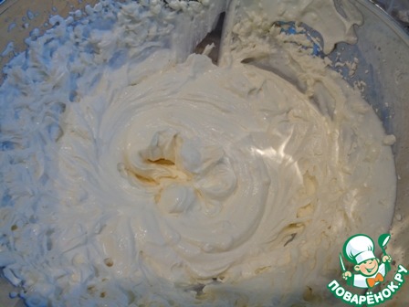 Приготовить крем: в творожный сырок добавить сметану, перемешать до однородности.