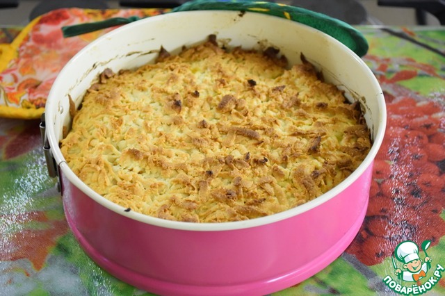 Сверху засыпаем 2 частью натертого на крупной терке теста.